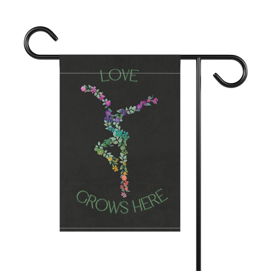 home/garden flag - indoor/outdoor - banner - DMB - love grows here - sleeve at top - double-sided design - 12"x18" - *POLE NOT INCLUDED