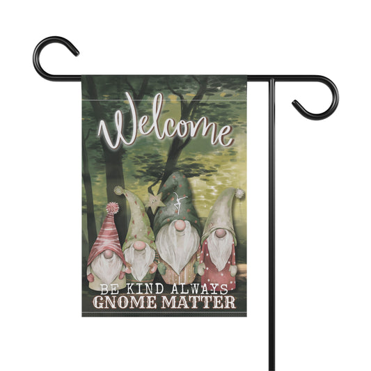 home/garden flag - indoor/outdoor - 12"x18"- banner - DMB - be kind always - gnomes - sleeve at top - double-sided design - 12"x18" - *POLE NOT INCLUDED
