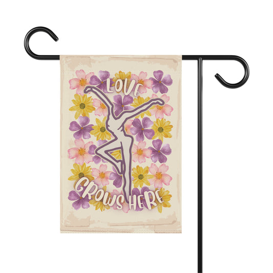 home/garden flag - 12"x18" indoor/outdoor - double sided - DMB - Love Grows Here - FD - sleeve at top -*POLE NOT INCLUDED