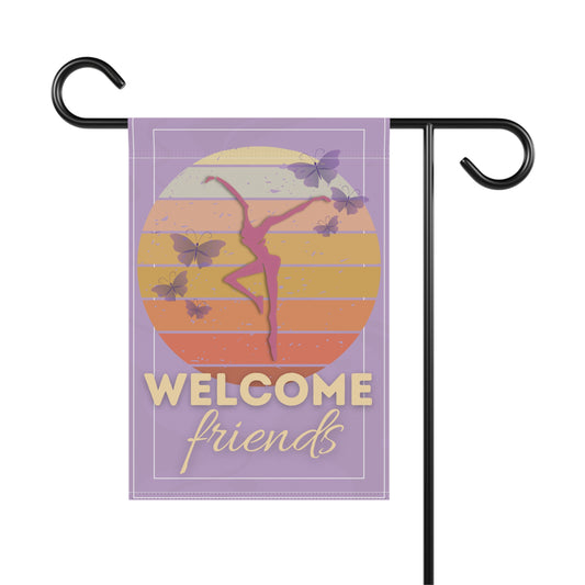 home/garden flag - indoor/outdoor - 12"x18"- DMB - purple - butterflies - Welcome - sleeve at top - double-sided design - 12"x18" - *POLE NOT INCLUDED