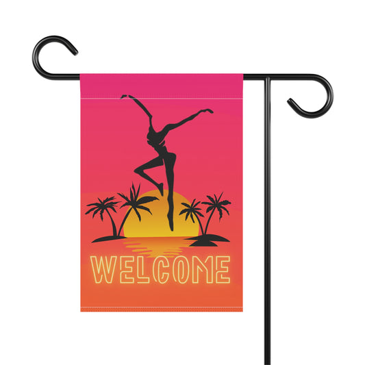 home/garden flag - indoor/outdoor - 12"x18" -banner - DMB- fd - hot pink - beach - palm - sunset - POLE NOT INCLUDED