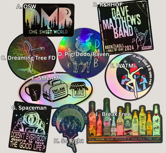 Assorted DMB Holographic Foil Waterproof Stickers 3-4 inches - Sold separately
