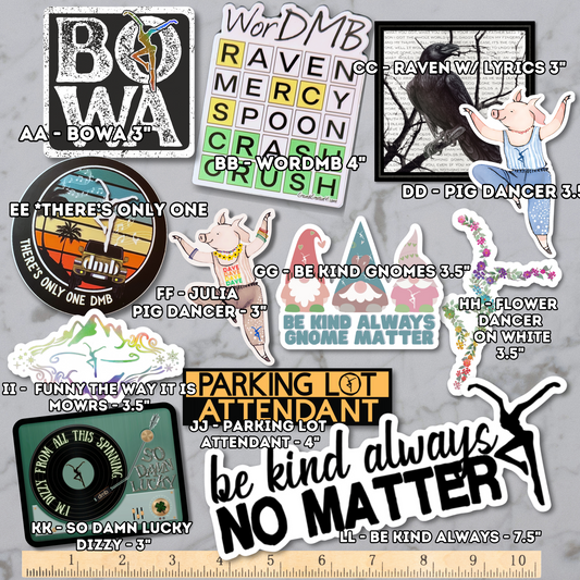Assorted DMB Matte finish Waterproof Stickers - Sold separately